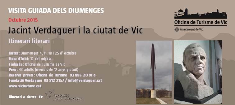 Els diumenges del mes d’octubre, l’Oficina de Turisme de l’Ajuntament de Vic encetarà una nova visita guiada que consisteix en un itinerari literari de Jacint Verdaguer i la ciutat de Vic, a càrrec de la Fundació Jacint Verdaguer.