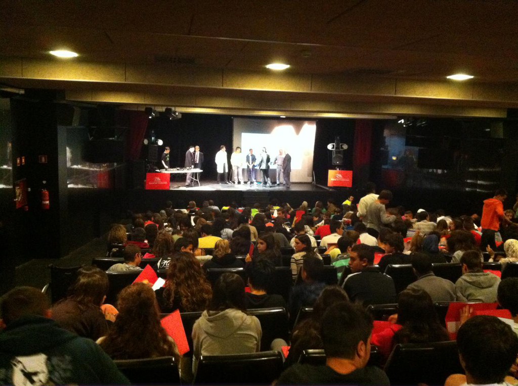 En el marc de la campanya ‘Vic, movem-nos amb seguretat’, la Regidoria de Convivència i Seguretat de l’Ajuntament de Vic va programar el primer Road Show conjuntament amb la fundació privada sense ànim de lucre, Mutual de Conductors aquest dimecres a l’Espai ETC de Vic. 250 estudiants de quart d’ESO de l’IES Vic, el Sagrat Cor, el Pare Coll i l’Escorial de Vic van assistir a la representació.