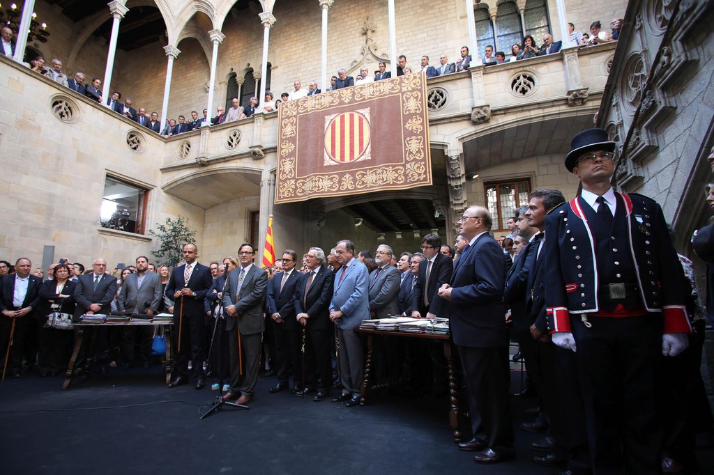 El matí de dissabte 4 d'octubre al Palau de la Generalitat es van trobar 920 alcaldes de Catalunya per fer el lliurement al president de la Generalitat les mocions favorables al 9 de novembre.