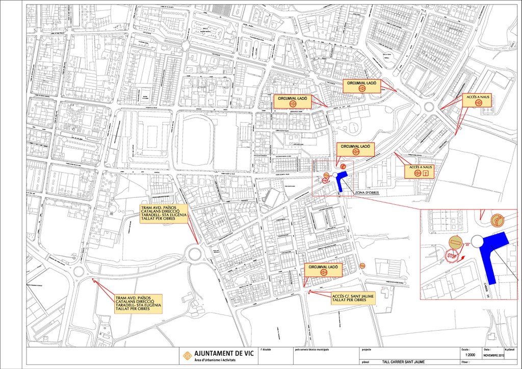En motiu de les obres de canalització de les aigües pluvials i residuals del carrer Sant Jaume de Vic, a partir de dimarts, dia 20 de novembre, es tallarà el trànsit de vehicles a l’Avinguda dels Països Catalans en sentit al barri de l’Horta Vermella, concretament el tram comprès entre el carrer Sant Jaume i el carrer Josep Pratdesaba. Com a recorregut alternatiu, s’habilitarà el pas dels vehicles pel carrer Sant Jaume, el passatge Sant Jaume fins a la plaça de l’Amusic i el carrer Josep Pratdesaba.