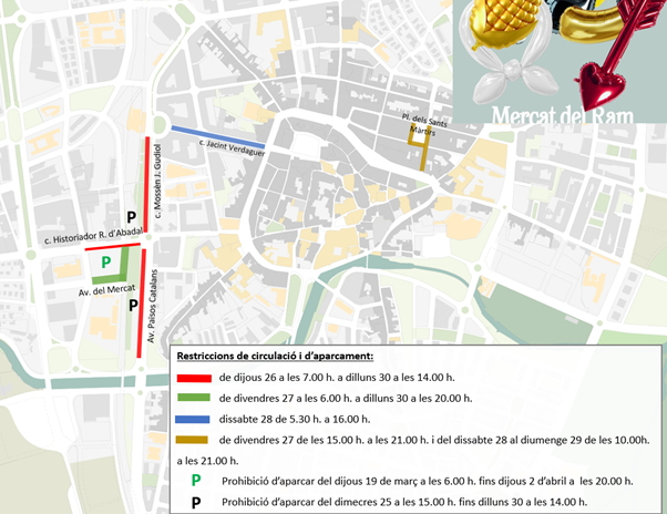 A partir d’aquest dijous 26 de març i fins al dilluns 30 de març, la mobilitat es veurà afectada en diversos punts de la ciutat amb motiu de la celebració del Mercat del Ram.