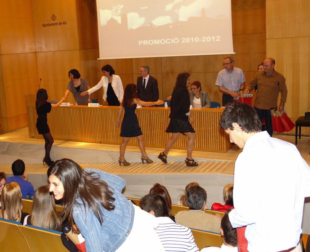 L’acte va ser presidit per la 1a tinent d’alcalde i regidora d’Educació, Anna Erra i el director de l’escola, Ignasi Roviró. La regidora va recordar a tots els assistents que aquesta promoció és especial, ja que coincideix amb el 150è aniversari del centre educatiu. Erra també va posar de relleu el vincle que hi ha entre l’escola i la ciutat, doncs des de 1925 l’escola està gestionada per un patronat on l’Ajuntament i el Bisbat també en formen part. La primera tinent d’alcalde també va recordar a tots els alumnes que mantinguin els valors que el centre promou com són “l’esforç, la qualitat i la catalanitat”. Finalment la representant de l’Ajuntament va demanar als alumnes que el pòsit de coneixement adquirit al llarg de la seva vida algun dia el puguin revertir a la pròpia ciutat.