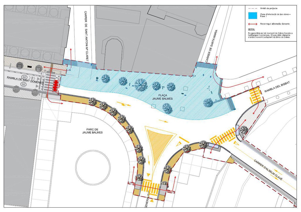 La primera fase afectarà la plaça de Jaume Balmes, entre els carrers de Sant Antoni Maria Claret i Santa Maria, i tindrà una durada aproximada d’onze setmanes