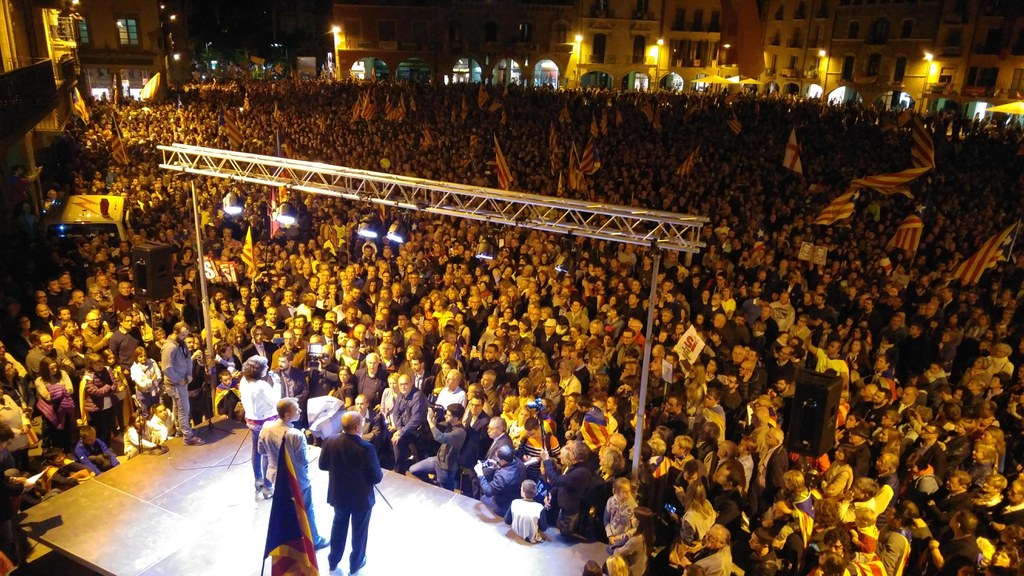 Més de 20.000 persones de Vic i comarca van omplir ahir el vespre la plaça Major de Vic i carrers adjacents per mostrar el seu suport a la democràcia i al consell d’alcaldes i alcaldesses d’Osona, que van estar acompanyats per regidors i regidores dels 50 municipis de la comarca, el dia en què la Guàrdia Civil va escorcollar i detenir alts càrrecs de les Institucions catalanes.