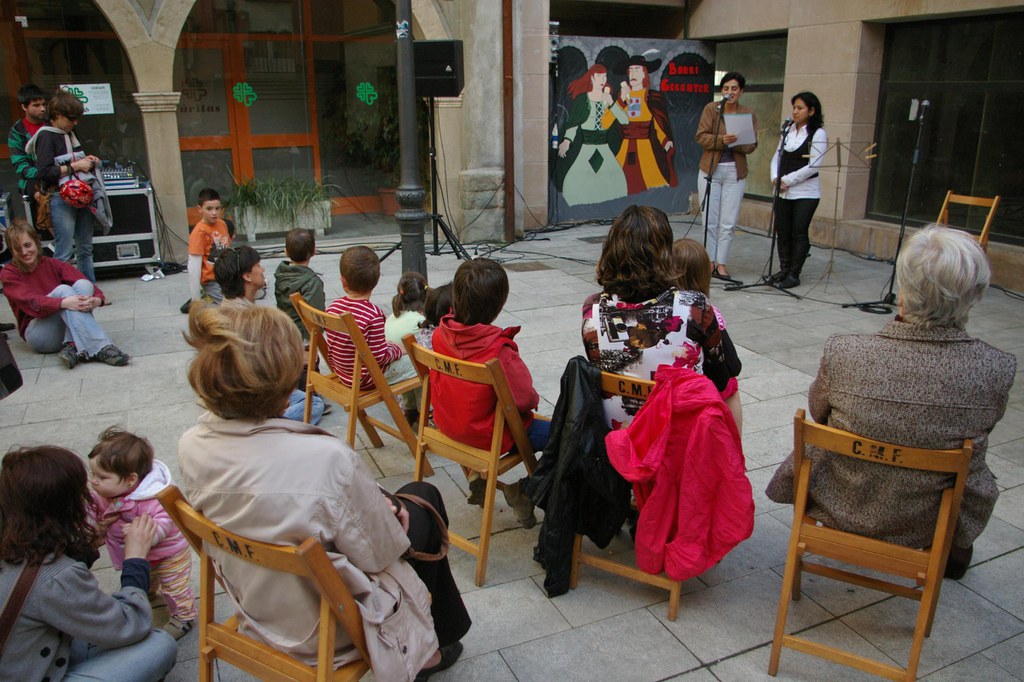 El passat dissabte, dia 2 d’abril, va tenir lloc la segona sessió del cicle de contes “Un pont de contes” a la plaça Pompeu Fabra (barri del seminari vell). Els contes tradicionals catalans i de l’Equador, els van explicar persones del Casal de Gent Gran de la Rambla Hospital, del Casal de Gent Gran Mossèn Guiteras i una parella lingüística del Centre de Normalització Lingüística. Després de la sessió es van lliurar als nens i nenes el recull de contes narrats.