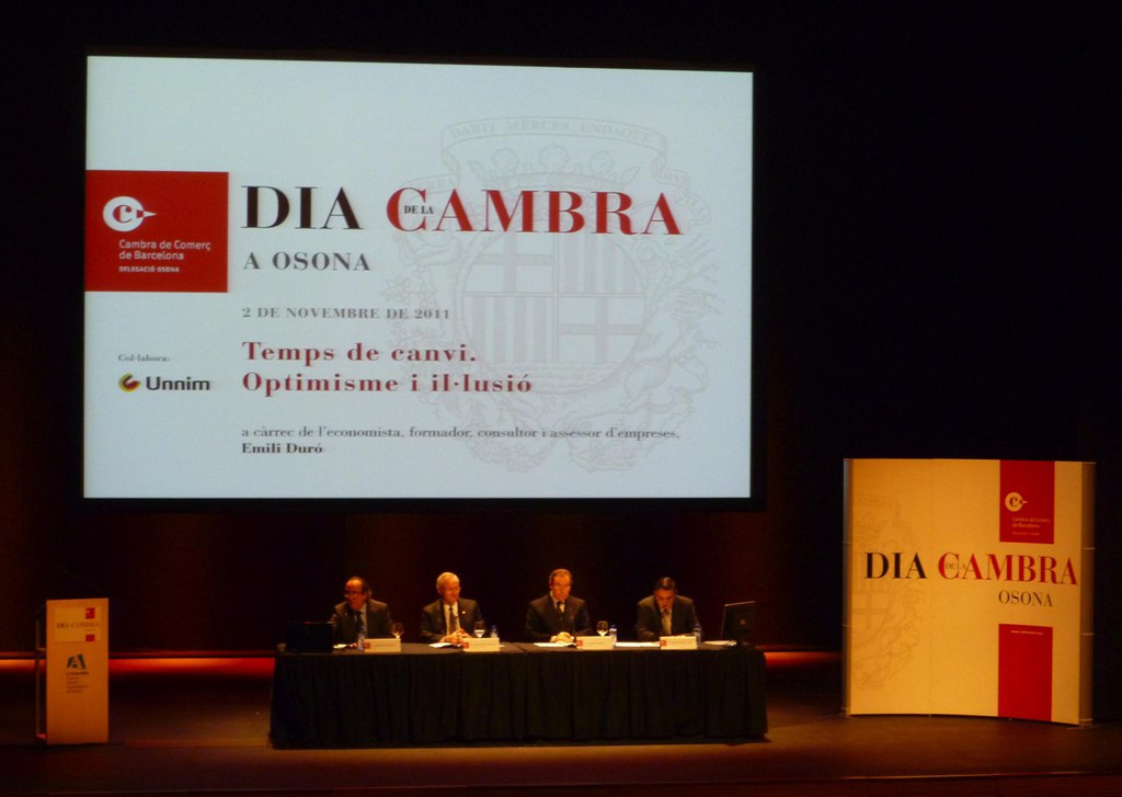 El conferenciant va ser convidat per la Cambra de Comerç que estava representada pel seu màxim exponent, Miquel Valls; el president de la Cambra de Comerç de la Delegació Osona, Josep Pujadas i el tinent d’alcalde i ajunt a alcaldia de l’Ajuntament de Vic, Josep M. Arimany.