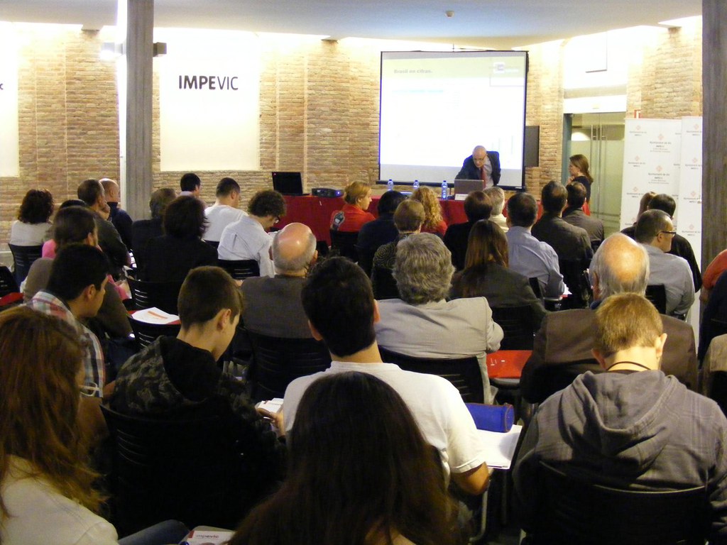 La sala Coll i Bardolet de l’edfici el Sucre de Vic s’ha omplert de gom a gom avui dijous, 2 de juny al matí, en el marc de la 2a Trobada Empresarial. La Trobada, que portava per títol “Brasil, un país emergent i preparat per fer negocis”, ha comptat amb la participació d’experts en la matèria que han parlat de com afrontar les complexitats de l’internacionalització i de com aprofitar les oportunitats de negoci que el Brasil ofereix a petites i mitjanes empreses.