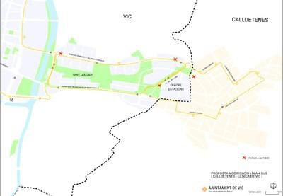 Degut a les obres de la nova variant de Calldetenes la línia 4 del bus urbà de Vic haurà de modificar una part del seu recorregut mentre durin les mateixes, ja que l’avinguda Miquel dels Sants Salarich i Torrents serà d’un únic sentit cap al carrer Bon Aire.