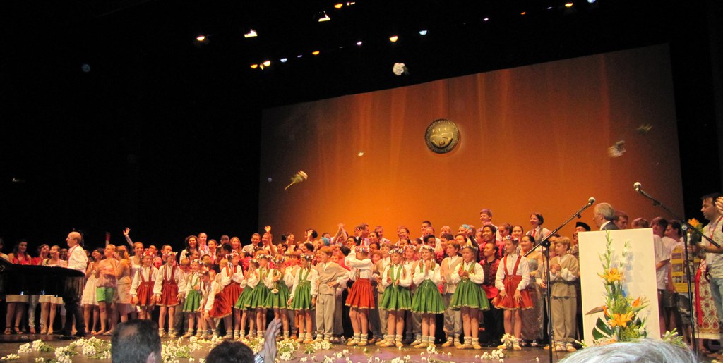 El Festival va acabar aquest diumenge al vespre amb una exhibició de cants i danses internacionals i la cerimònia de clausura. Bona part dels grups participants es van aplegar a l’escenari del teatre per cantar l’Himne del Festival seguit de l’Hora dels adéus amb la participació de tot el públic de la sala.