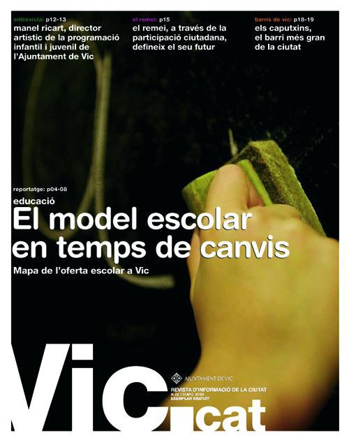 El número 2 de la revista d’informació de la ciutat editada per l’Ajuntament de Vic, Vic.cat, ja ha sortit al carrer. En aquesta ocasió s’hi pot trobar un extens reportatge sobre educació que inclou un mapa escolar de Vic, una entrevista a Manel Ricart, director artístic de la programació infantil i juvenil de l’Ajuntament de Vic, i vàries notícies sobre el POUM, el procés de participació del barri del Remei o el Pla Local de Joves, entre d’altres.Vic.cat va presentar-se el passat mes de desembre i té una periodicitat trimestral. A través de la seves pàgines es presenten diferents temes d’interès pels ciutadans i ciutadanes. Es reparteix per totes les vivendes de la ciutat amb una difusió de 15.000 exemplars i també es pot recollir en les diferents dependències municipals.A part dels reportatges esmentats, en aquest número 2 també hi trobem les seccions fixes com són l’actualitat informativa de l’Ajuntament de Vic; el servei que correspon a les audioguies; els Caputxins, com a barri de Vic; l’agenda; l’opinió dels partits polítics; la guia de serveis i el racó de Vic que envia la lectora Margarita Tañà, del barri del Remei amb una fotografia realitzada des de casa seva.