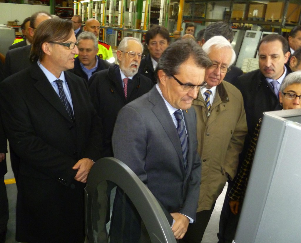 Un moment de la visita a l’empresa Girbau del president de la Generalitat, Artur Mas, acompanyat de l’alcalde de Vic, Josep M. Vila d’Abadal i altres autoritats