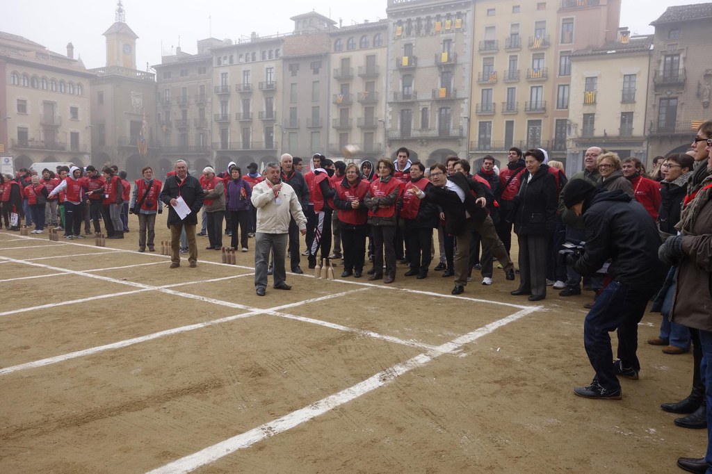 Aquest divendres, la plaça Major de Vic ha acollit el primer Campionat intergeneracional de bitlles catalanes.