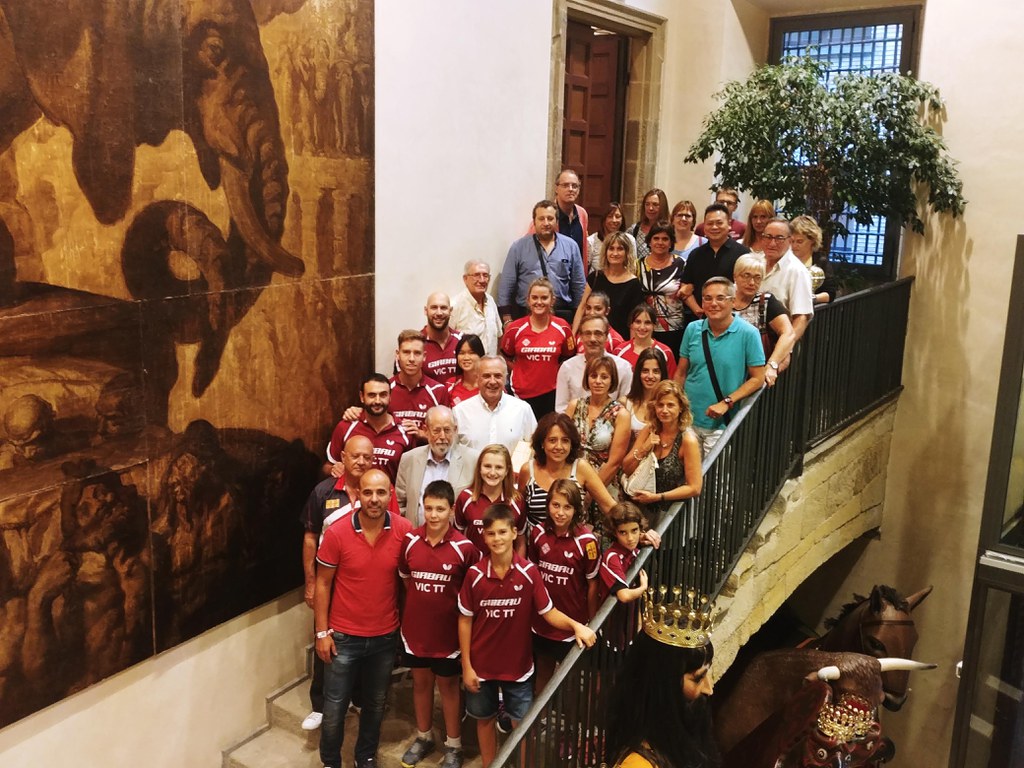 L’alcaldessa de Vic, Anna Erra, acompanyada pel regidor d’Esports, Titi Roca, va rebre institucionalment al club a la Sala de la Columna de l’Ajuntament