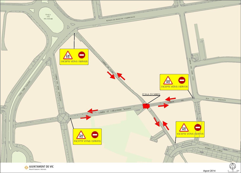 A partir d’aquest proper dilluns 11 d’agost iniciaran les obres de reparació del paviment de la cruïlla del carrer de Gurb. Es veuran afectats el carrer Pla de Balenyà, el carrer Arquebisbe Alemany i el carrer de Gurb. Tots aquests carrers  estaran tallats al trànsit i només hi podran accedir veïns i serveis.