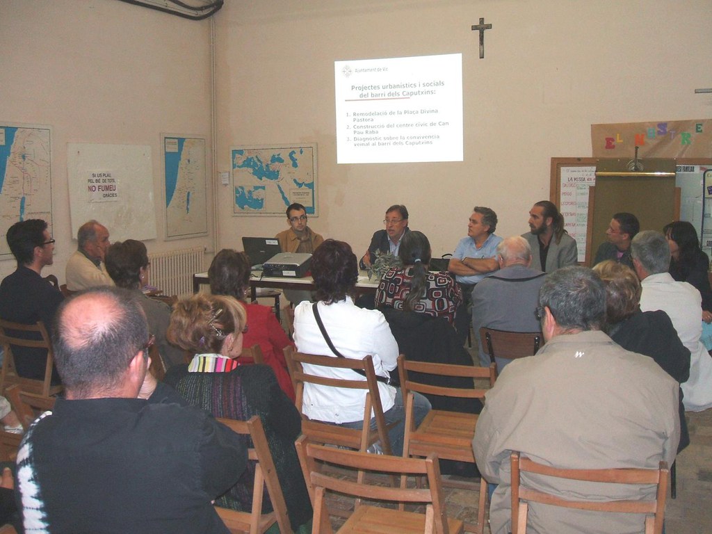 L’Ajuntament de Vic va convocar dimecres passat, dia 24 de setembre, una reunió per informar els veïns i veïnes del barri dels Caputxins dels nous projectes urbanístics i socials que es duran a terme al barri. La reunió, que va comptar amb la participació d’una trentena de veïns, va comptar amb la participació del regidor del barri dels Caputxins, Jacint Raurell, el regidor de Recursos Humans i Serveis, Toni Serrat, i el regidor de Règim Interior, Josep Rafús, acompanyats de tècnics de l’Ajuntament de diferents àmbits.Durant la reunió, que es va dur a terme a les instal·lacions de la parròquia de la Divina Pastora, es va explicar la remodelació que sofrirà la plaça de la Divina Pastora, obres que està previst que comencin abans d’acabar l’any. El projecte implica l’ampliació de les voreres i el manteniment i potenciació de les zones verdes existents a la plaça. També es va explicar l’estat de les obres del centre cívic de Can Pau Raba i els usos que se’n faran. El centre cívic comptarà amb uns equipaments especials per poder assajar i representar obres de teatre. A més a més, hi haurà una sala amb ordinadors, espais d’activitats i despatxos que podran utilitzar l’associació de veïns i veïnes i les entitats del barri. El centre cívic té molta llum natural, finestrals i una gran terrassa.També es va donar a conèixer el projecte de diagnòstic de la convivència veïnal del barri que farà una radiografia social del barri per detectar les necessitats del veïnat, fomentar la implicació de la ciutadania a les entitats i recollir propostes de millora pel barri. Els veïns i veïnes varen participar activament a la reunió.