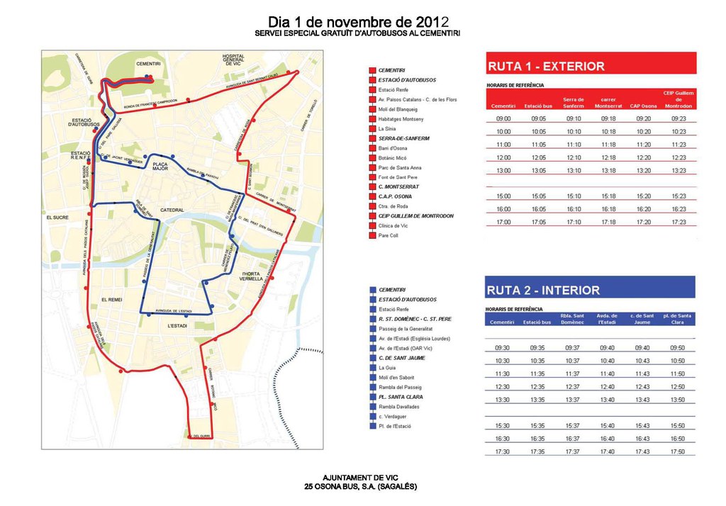 L’Ajuntament de Vic ofereix el servei gratuït d’autobús al cementiri pel dia de Tots Sants