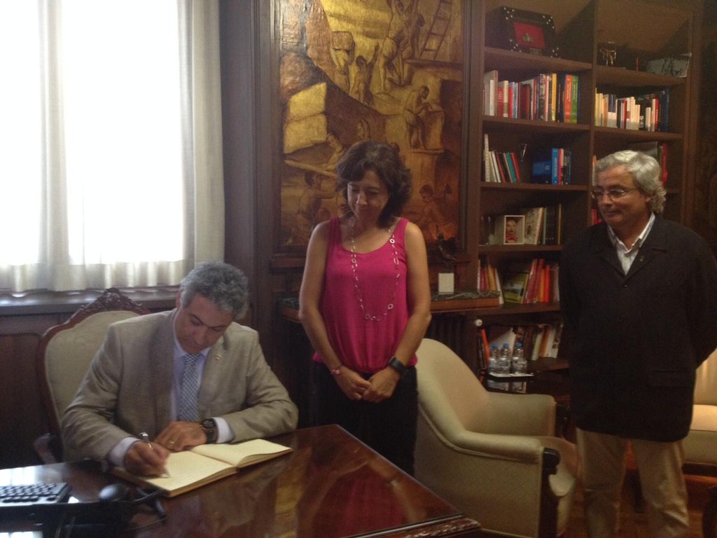 El conseller, després de signar el llibre d’honor de l’Ajuntament de Vic, ha mantingut una reunió amb l’alcaldessa de Vic, Anna Erra; el regidor de Món Rural i Medi Ambient, Josep-Ramon Soldevila i altres autoritats de la delegació del Govern a la Catalunya Central.