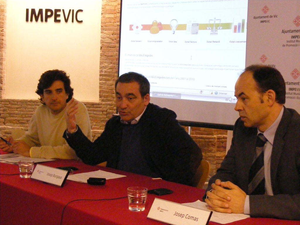 L’Institut Municipal de Promoció i Economia de Vic (ImpeVic) ha presentat aquest dimecres, 5 de maig, a les 12.00 h la III Jornada de l’Àngel Inversor, que tindrà lloc el pròxim dimarts 10 de maig a l’auditori Marià Vila d’Abadal, a l’edifici el Sucre de Vic. L’acte ha comptat amb les intervencions del president de l’ImpeVic i segon tinent d’Alcalde, Josep Burgaya; del director de l’ImpeVic, Josep Comas i de l’assessor estratègic empresarial de l’ImpeVic, Albert Font.
