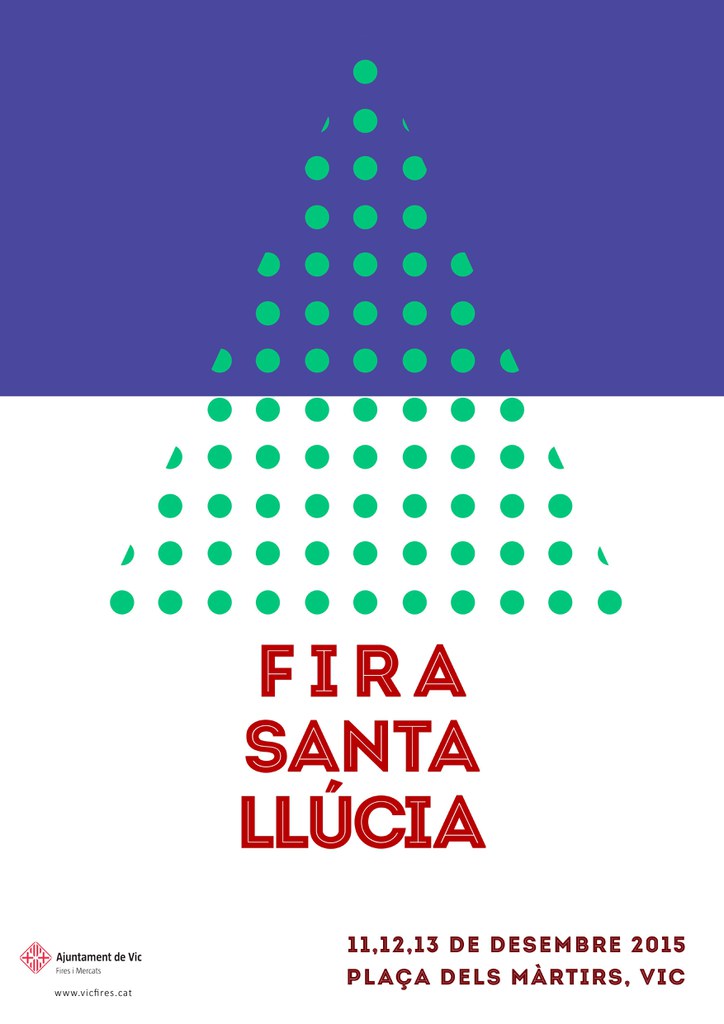 La Fira de Santa Llúcia es celebrarà els dies 11, 12 i 13 de desembre a la Plaça dels Màrtirs de Vic. Una vintena de parades oferiran tot tipus de productes artesanals relacionats amb el nadal com figures pel pessebre, avets, tions, objectes de decoració i també productes d'alimentació com torrons i garapinyades.