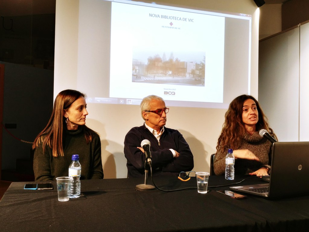 Fabiana Palmero, regidora d’Urbanisme, Susagna Roura, regidora de Cultura, i Toni Casamor de l’estudi d’arquitectes BCQ, responsable de la construcció del nou edifici, van presentar la proposta de construcció del nou edifici de la biblioteca a la ciutadania i al mateix temps, van recollir les aportacions del públic assistent. Per la seva banda, l’arquitecte Toni Casamor, de l’estudi BCQ Arquitectes, va detallar les característiques del nou equipament cultural de la ciutat.