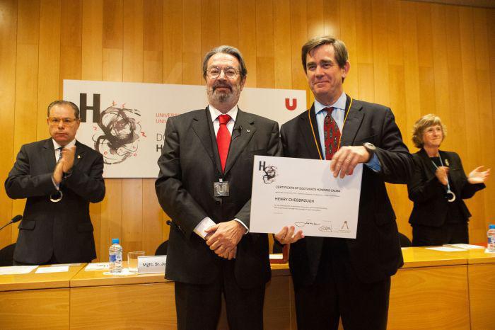 Avui dijous, ha tingut lloc a l’Aula Magna de la Universitat de Vic – Universitat Central de Catalunya, l'acte solemne d’investidura del Dr. Henry Chesbrough com a Doctor Honoris Causa, a proposta de la Facultat de d’Empresa i Comunicació. Els mèrits que se li reconeixen amb aquesta investidura són “l’aportació a la innovació i l’emprenedoria a l’empresa, especialment a través del concepte d’innovació oberta”, segons els acords llegits per la secretària general, Carme Sanmartí, un cop començada la sessió. L’acte ha estat presidit pel rector de la UVic, Jordi Montaña, i ha comptat amb la presència del regidor de Ciutat del Coneixement de l’Ajuntament de Vic, Josep Arimany.
