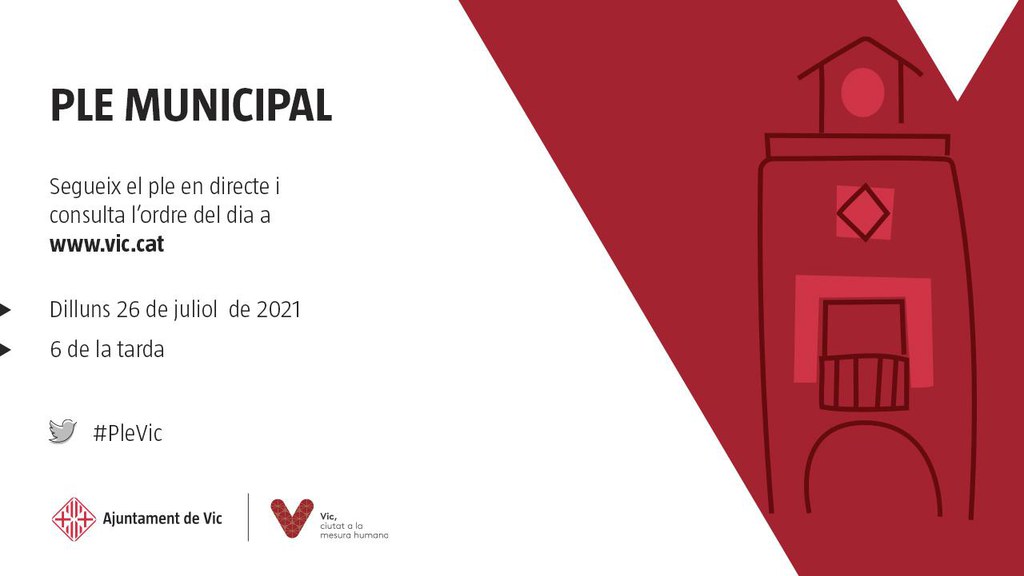 Tindrà lloc a les 6 de la tarda telemàticament i es pot seguir en directe a www.vic.cat o El 9 TV i via twitter amb l’etiqueta #PleVic