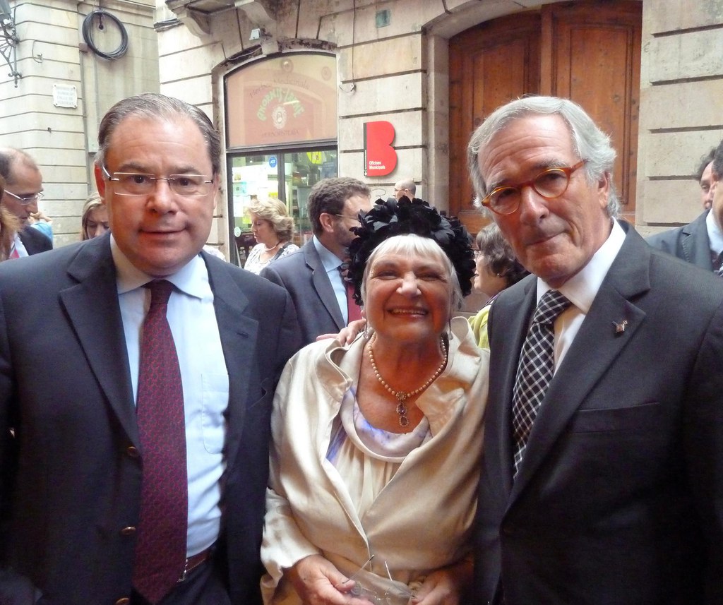 Pilarín Bayés acompanyada pel tinent d'alcalde de l'Ajuntament de Vic, Josep Arimany i l'alcalde de Barcelona, Xavier Trias