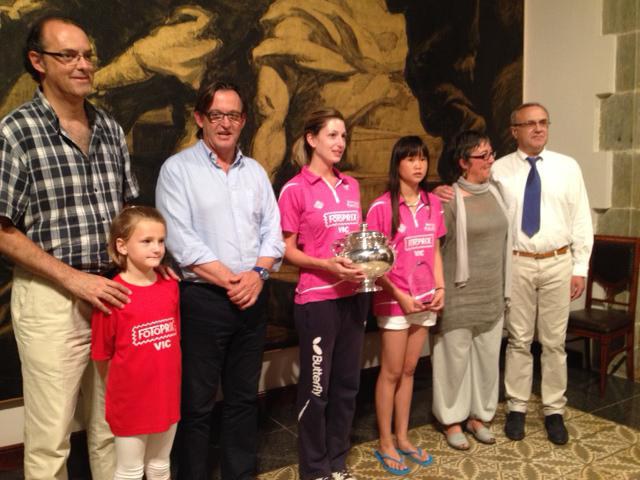 Ahir dimarts 1 de juliol a la tarda,  l’alcalde de Vic Josep M. Vila d’Abadal, acompanyat de Montse Rovira, regidora d’Esports, i Enric Roca, president del Vic  Tennis Taula, van rebre  a l’equip Fotoprix Vic de Tennis Taula per felicitar la seva victòria quedant campió de la Copa de la Reina.