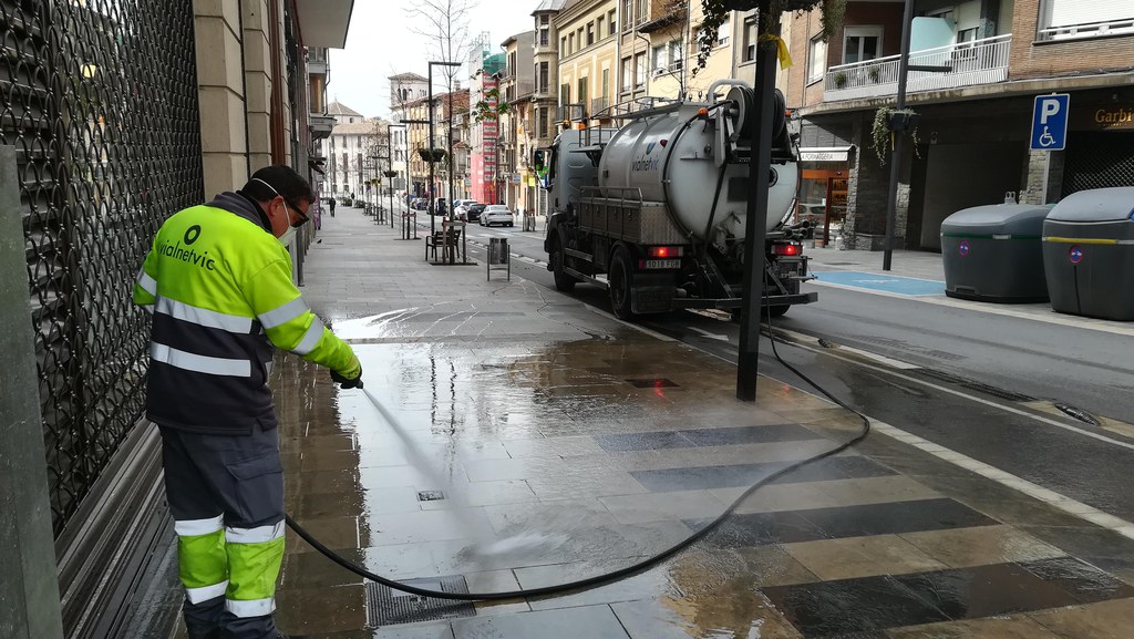 La neteja viària de Vic s’ha reforçat i adaptat des de finals de la setmana passada per fer front a l’episodi de coronavirus i contenir-ne el contagi.  Tal com exposa el regidor de Manteniment i Serveis, Albert Castells, s’han establert diferents mesures i replantejat mètodes i torns de treball, perquè hi hagi “el mínim contacte entre la plantilla de persones que treballen al mateix temps que es manté un servei bàsic”