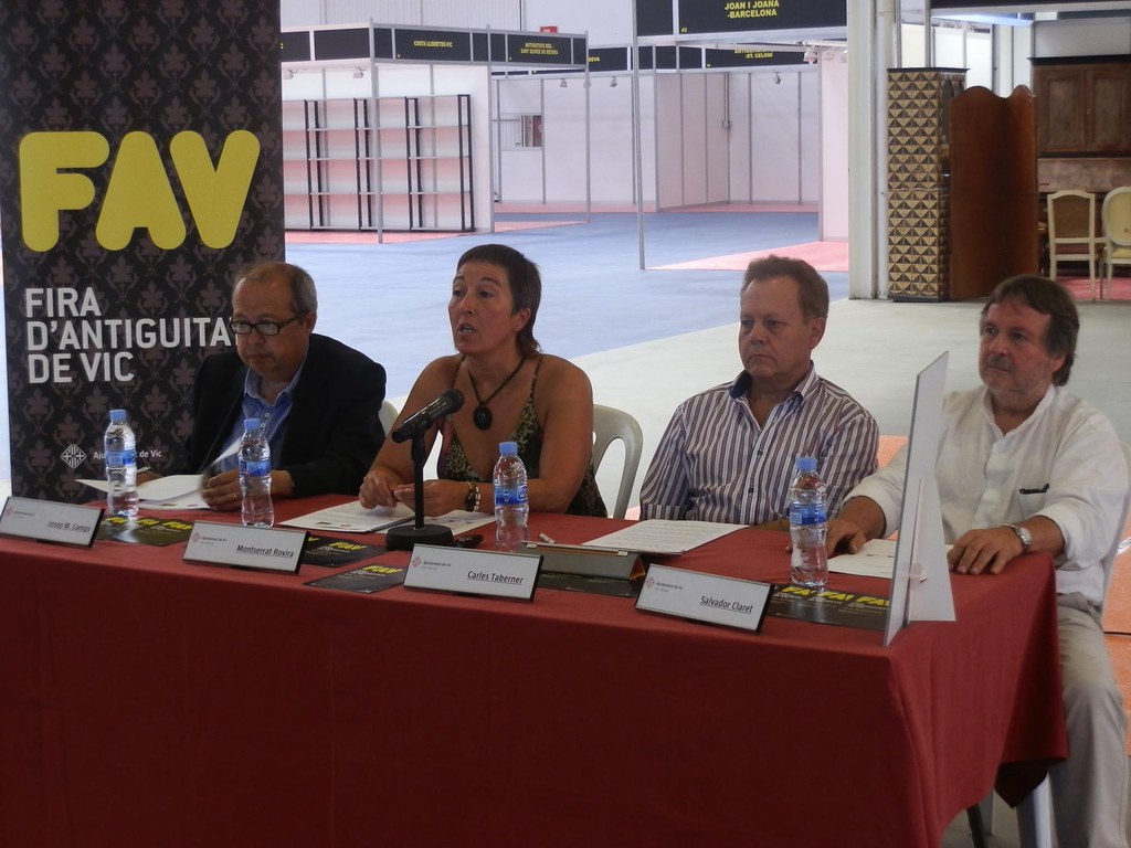 Avui dimarts, dia 14 d’agost, el recinte Firal del Sucre ha acollit la roda de premsa de la presentació de la Fira d’Antiguitats de Vic (FAV). L’acte ha comptat amb la presència de la regidora de Fires i Mercats de l’Ajuntament de Vic, Montse Rovira; el responsable de Llobregat Lúdics i director de la FAV, Josep M. Camps; el regidor de Cultura i Promoció de l’Ajuntament de Sils, Carles Taberner i el director de la col•lecció d’automòbils Salvador Claret, Salvador Claret.