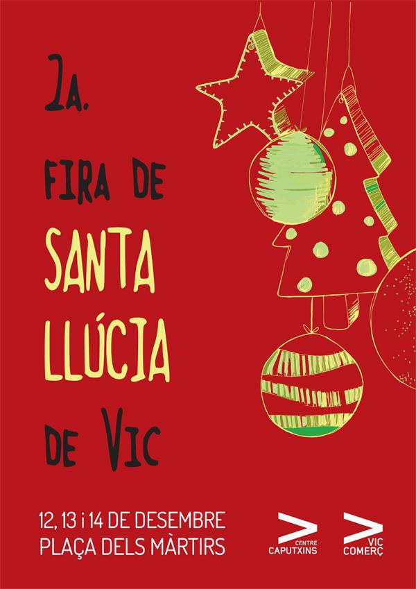 El pròxim cap de setmana torna a la ciutat de Vic la Fira de Santa Llúcia. Els comerciants de la plaça dels Màrtirs i carrers adjacents, anomenats Caputxins Centre Comerç, han organitzat la segona edició d’una fira que té una clara voluntat de consolidar-se dins el panorama nadalenc de la nostra ciutat.