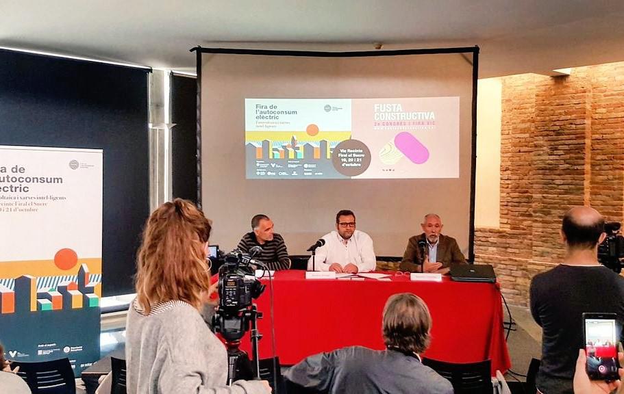 Avui al matí, el regidor de Fires i Mercats de Vic, Benjamí Dòniga, el gerent de l’Organisme Autònom de Fires i Mercats (OFIM), Bernat Vilarasau, i el coordinador general de Projectes del Gremi Fusta i Moble, Salvador Ordoñez, han presentat les dues fires que es duran a terme els dies 19, 20 i 21 d’octubre a Vic al Recinte Firal El Sucre, relacionades amb la sostenibilitat: la 1a Fira de l’Autoconsum Elèctric i el 2n Congrés i Fira de la Fusta Constructiva.