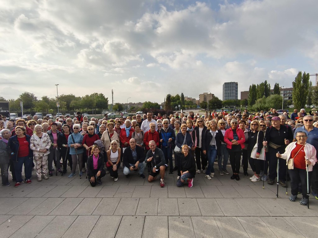 Els participants a la caminada popular amb motiu de la Diada Internacional de la Gent Gran