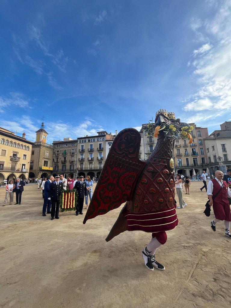 Imatge de la comitiva de la Diada creuant la plaça Major