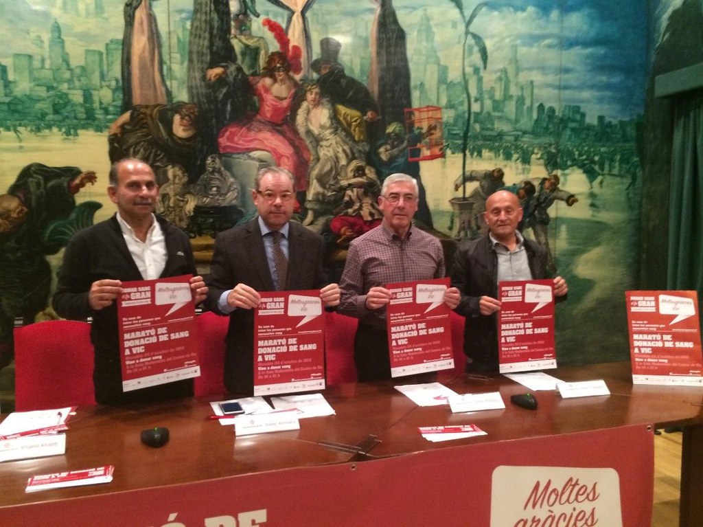 Avui al migdia s’ha fet la roda de premsa per presentar la 7a edició de la Marató de sang que, sota el lema “Donar sang et fa gran, comparteix la teva sang!”, tindrà lloc el proper dissabte 24 d’octubre, de 10 del matí a les 9 del vespre, a la Sala Modernista del Casino de Vic.