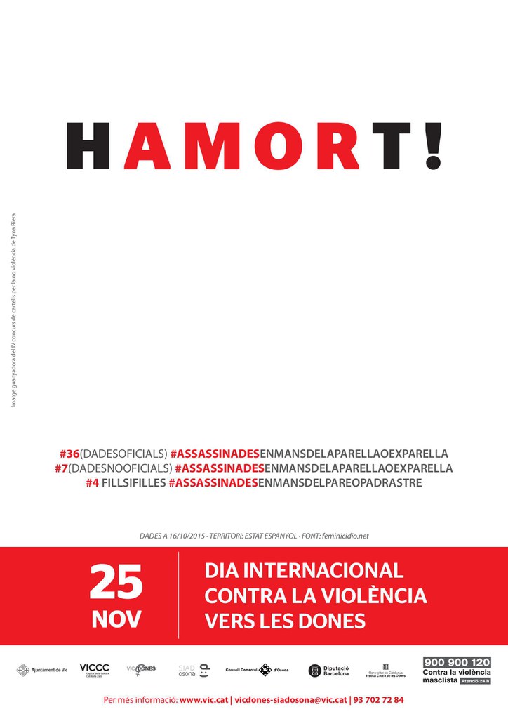 Com cada any i en motiu del Dia Internacional per a l’eliminació de la violència vers les dones, que tindrà lloc el proper 25 de novembre, l’Ajuntament de Vic a través del servei del VicDones-SIAD Osona, de l’àrea d’Igualtat i Ciutadania, ha dissenyat un programa d’activitats adreçat a tota la ciutadania. Les activitats programades s’organitzen des de les entitats i associacions del territori, així com des del mateix servei.