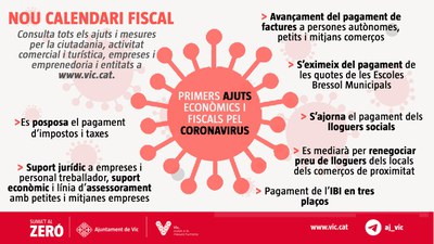 20/03/2020 Primers ajuts econòmics i fiscals per mitigar els efectes del coronavirus a Vic Compartir: Primers ajuts econòmics i fiscals per mitigar els efectes del coronavirus a Vic Facebook Twitter Whatsapp Email