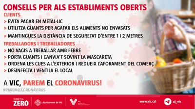 21/03/2020 Recomanacions pels comerços oberts amb motiu del coronavirus Compartir: Recomanacions pels comerços oberts amb motiu del coronavirus Facebook Twitter Whatsapp Email