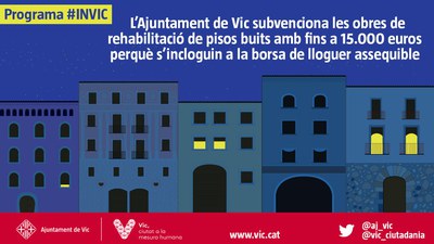 21/05/2019 InVic fomenta la rehabilitació de pisos buits a canvi que s’incloguin a la borsa de lloguer assequible Compartir: InVic fomenta la rehabilitació de pisos buits a canvi que s’incloguin a la borsa de lloguer assequible Facebook Twitter Whatsapp Email