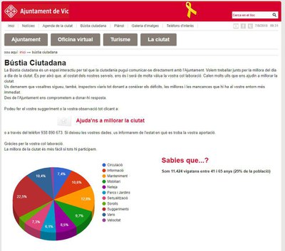 10/08/2018 La bústia ciutadana de Vic arriba a les 10.000 peticions Compartir: La bústia ciutadana de Vic arriba a les 10.000 peticions Facebook Twitter Whatsapp Email
