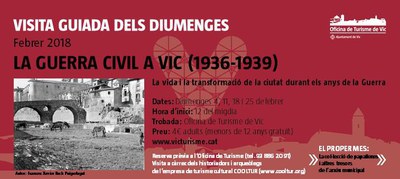 01/02/2018 L’empremta de la Guerra Civil, protagonista de les visites temàtiques dels diumenges de febrer Compartir: L’empremta de la Guerra Civil, protagonista de les visites temàtiques dels diumenges de febrer Facebook Twitter Whatsapp Email
