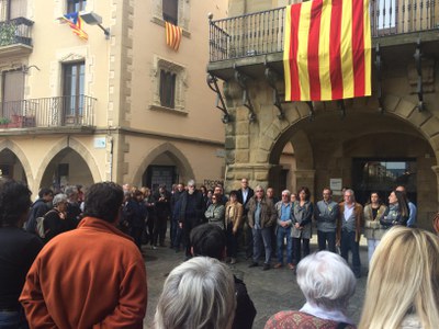 02/11/2017 Un centenar de persones donen suport al govern i als membres de la mesa del Parlament davant l’Ajuntament Compartir: Un centenar de persones donen suport al govern i als membres de la mesa del Parlament davant l’Ajuntament Facebook Twitter Whatsapp Email