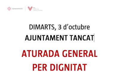 02/10/2017 L’Ajuntament de Vic tanca per dignitat Compartir: L’Ajuntament de Vic tanca per dignitat Facebook Twitter Whatsapp Email