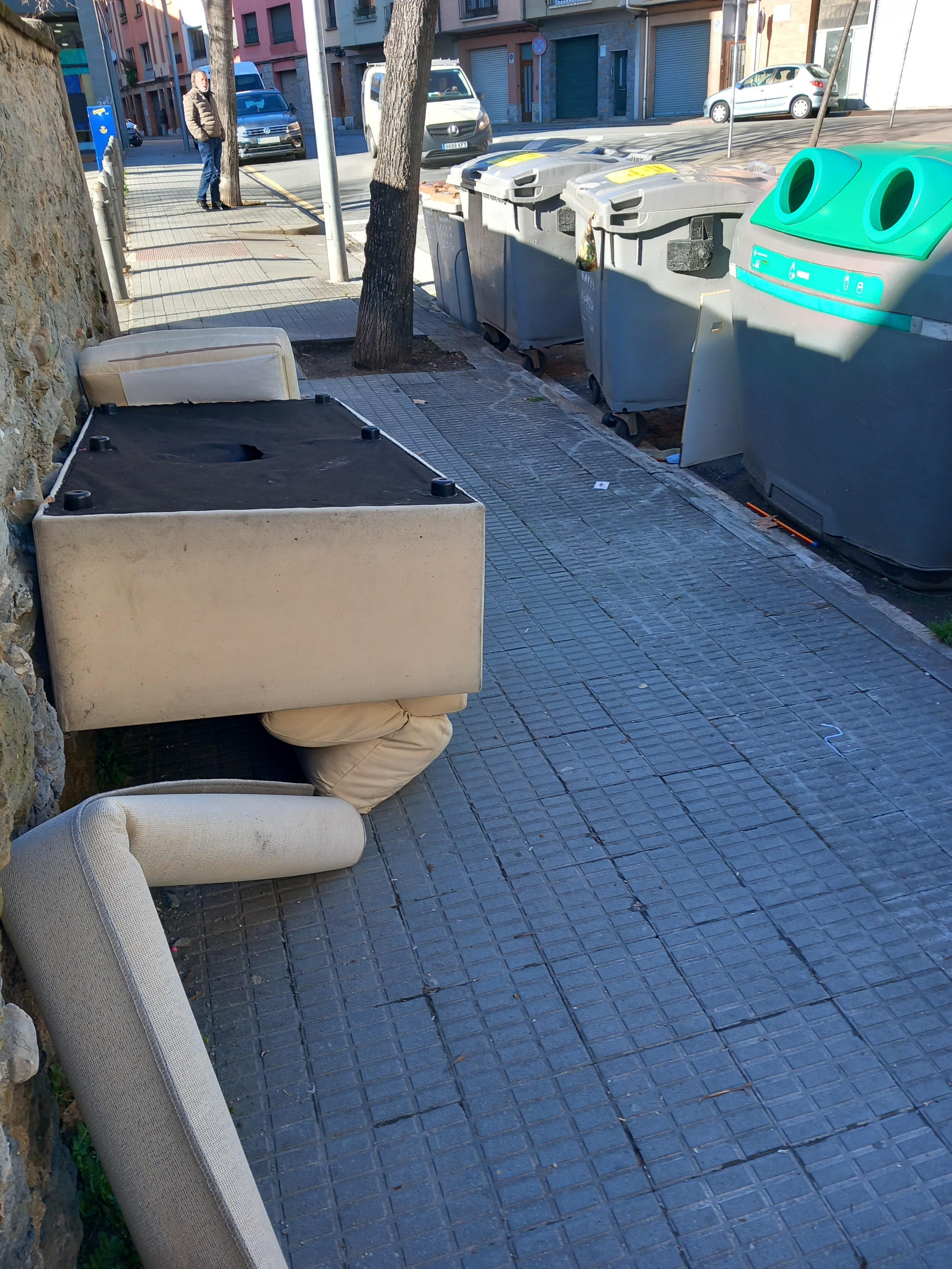 20090 CAPUTXINS 2026-01-23 Una setmana més. I van... Continuem amb l'incivisme. Contenidors del Raval Cortines. Us he enviat fotografies de wc, calaixeres, mobles, matalassos... I avui, un sofà que entorpeix el pas als vianants. Quina serà la propera fotografia? Imatge incidència 20090