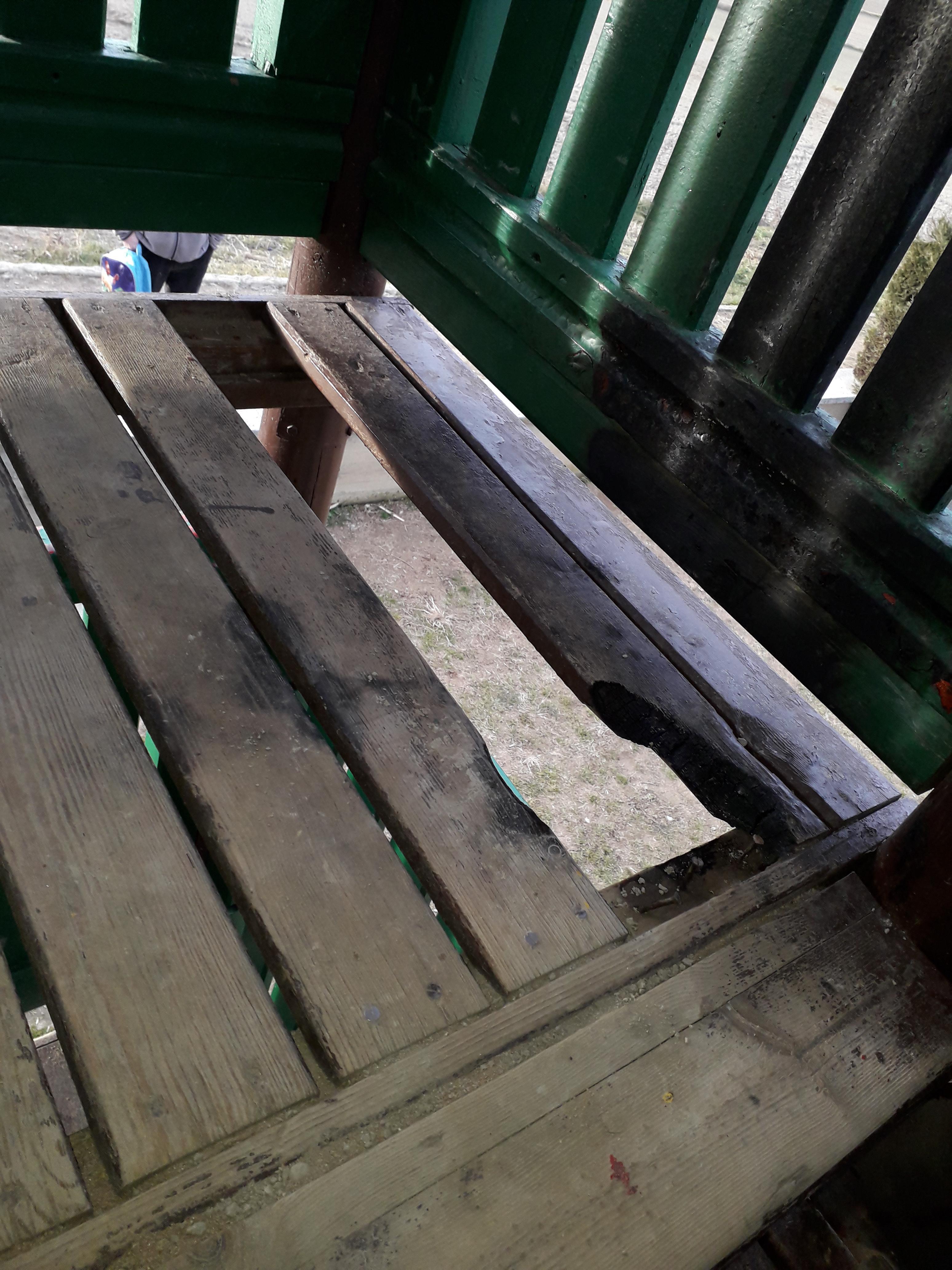 Amb el personal de l'Àrea de Serveis hem reparat 3 peces que faltaven, estaven malmeses a causa de l'incivisme de la gent. Concretament ens han fet foc a dins les plataformes de fusta, s'han fet malbé les fustes de suport comportant un perill pels usuaris. Passem avís a la Guàrdia Urbana i als agents cívics per tal de poder vetllar i informar d'aquests fets.