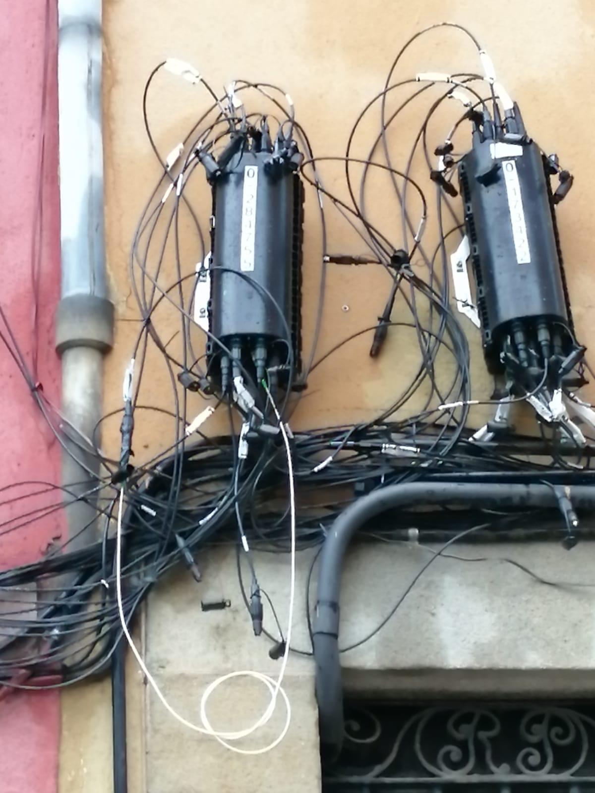 És possible que els Srs. de dins del nostre Ajuntament, responsables de cuidar la imatge de la ciutat de Vic com també del poble de Sentfores La Guixa, no s'adonin dels desastres que estan fent els Srs. Instal·ladors que treballen per les empreses de telefonia, instal·lant caixes i fils de fibra òptica, per les façanes de les cases dels nostres carrers, vergonyós, caixes i fils mal col·locats; uns pengen per aquí i d'altres per allà, lligats els uns amb els altres, si en sobre un tros queda penjant. Perquè tant desmanec? Qui és el responsable de què es facin les feines correctament?, crec que ningú, i si i tenim algú, de què es cuida?, feines segurament subcontractades, personal en absolut professionals, com es veu, i aquí ningú diu res, on són els responsables?, ve diuen què en tenim, doncs no ho sembla; vegin la foto que els adjunto, una imatge que no hauria de ser. I algú diu que està orgullosa de la ciutat que tenim.