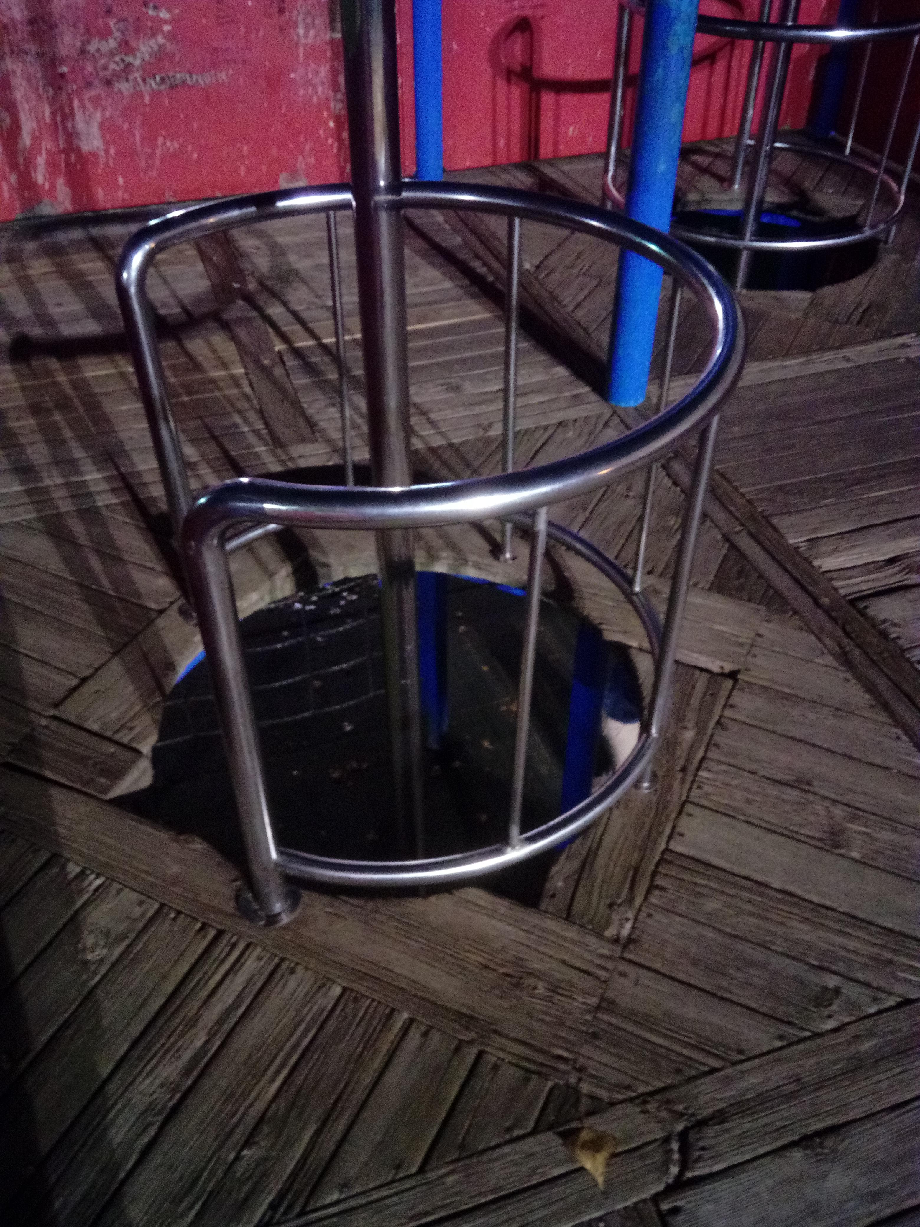 Al parc de la Bassa dels Hermanos , una de les baranes circulars d'acer d'un baixador, està trencada per la part inferior, tal com es veu a la imatge adjunta.