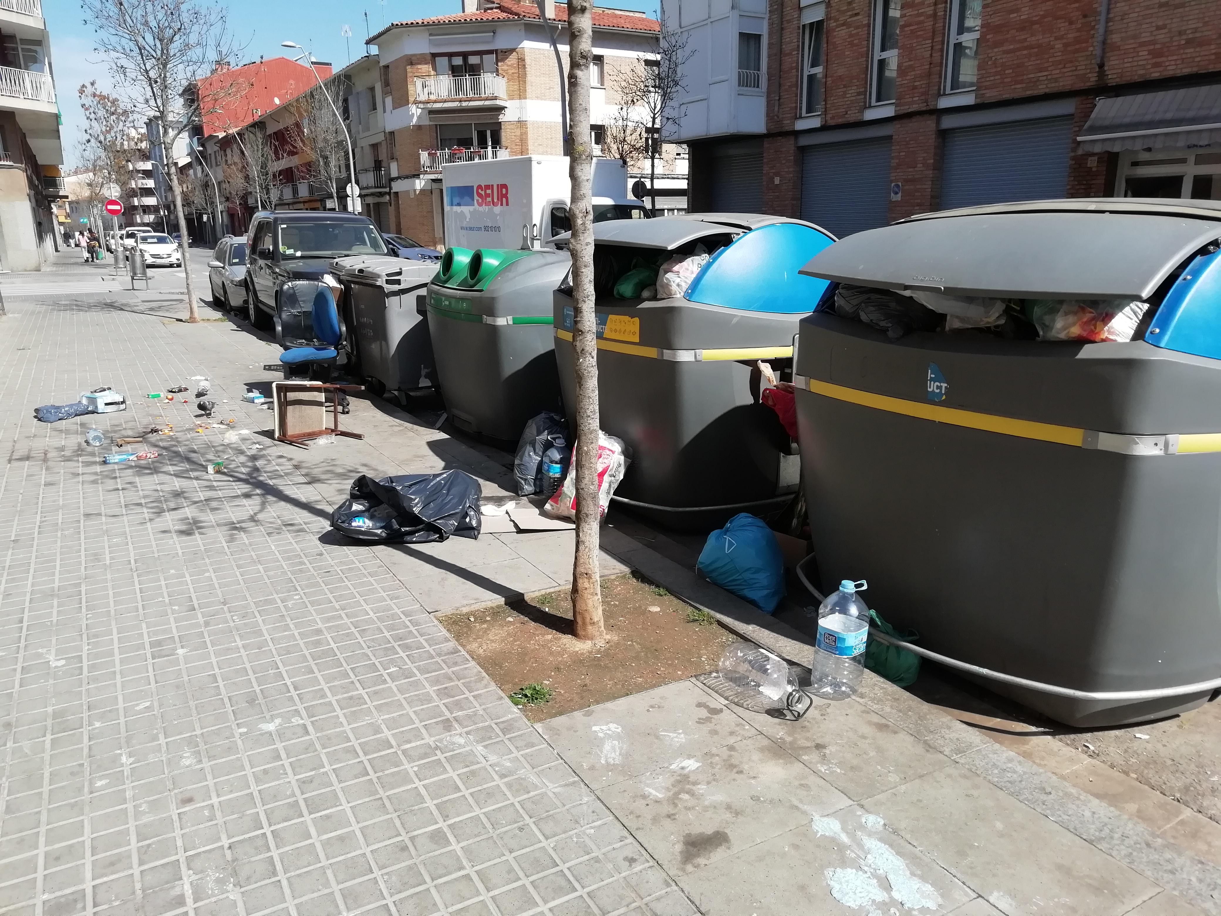Estem en situació d'excepcionalitat i intentem prestar els serveis de recollida i neteja amb la màxima normalitat, malgrat que és molt difícil. S'ha hagut de reorganitzar torns i reestructurar equips per evitar contactes entre els treballadors. Malgrat això , ens n'anem sortint. En aquest cas concret, es pot haver produït algun desajust, i sobretot en tractar-se d'un dia festiu, el servei va ser molt reduït i possiblement va ser la causa de l' aparició d'aquest desbordament. La col·laboració ciutadana és molt important aquests dies, per facilitar la feina i no posar en risc els treballadors del servei amb situacions excepcionals.