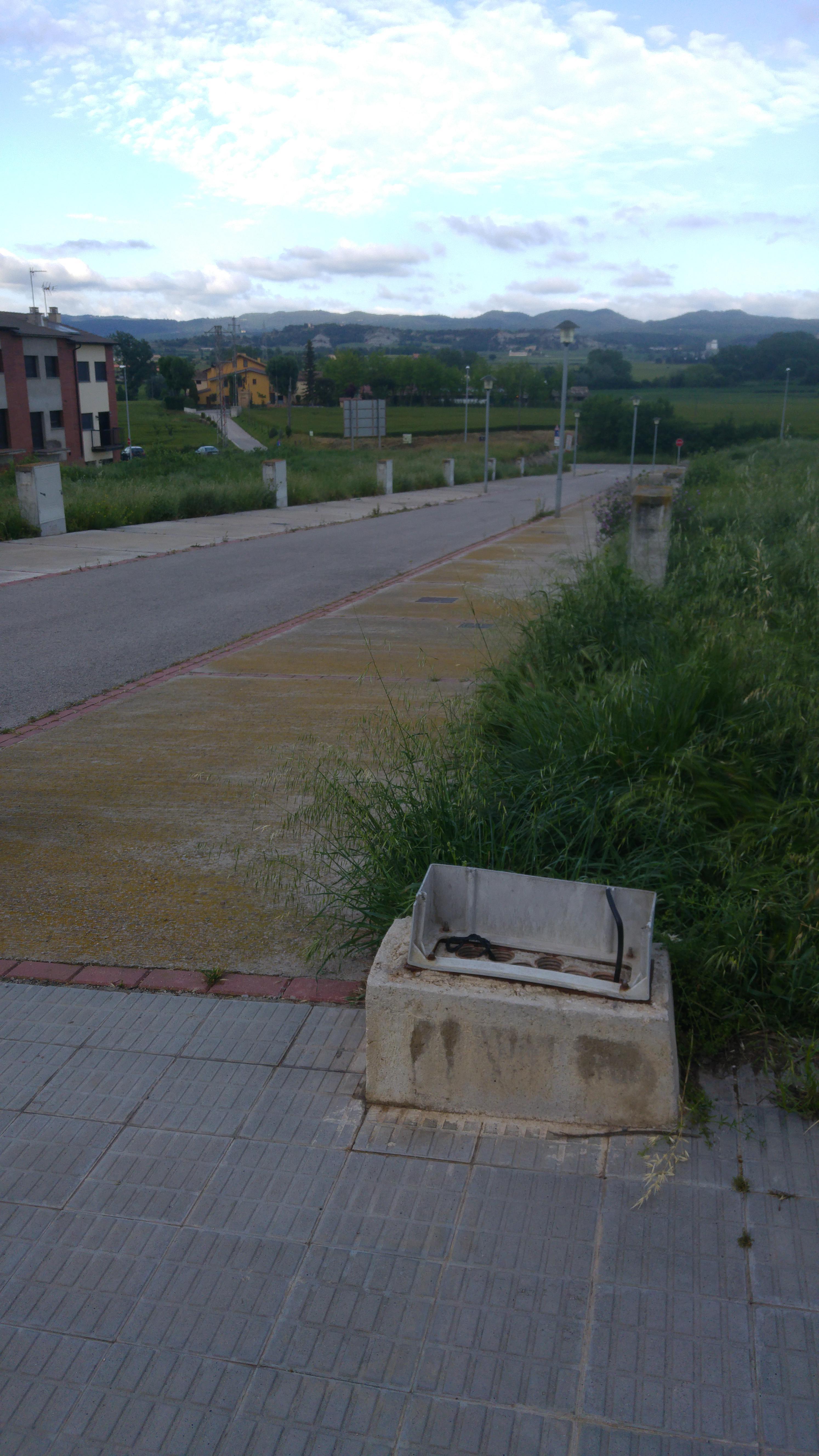 Sóc un veí que porta a passejar al gos als voltants de Plaça Osona, i a l'encreuament de Ramon Masferrerr i Solà, i el de Joan Sunyol i Genís, hi ha el que sembla els fonaments d'una caixa d'electricitat que fa molt de temps que està xafada. Tot i això , sobresurten alguns cables. Penso que o bé s'hauria de reposar la caixa original o s'haurien de tapar els cables. I en cas que no impliquin cap perill, retirar-los completament, per evitar mals majors i brutícia al barri. Adjunto foto