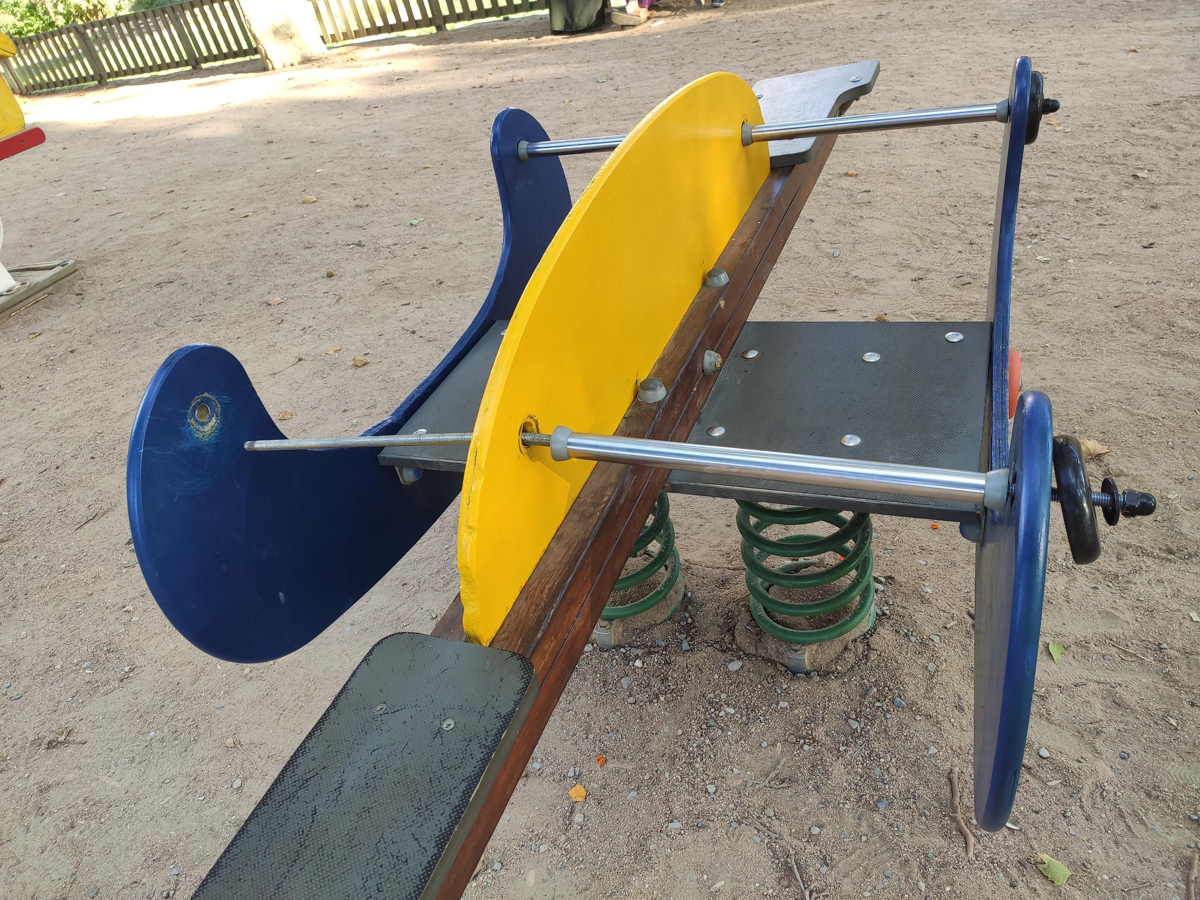 Joc pels nens trencat (o més aviat " bandalitzat "), al parc infantil del Prat de la Riera, i un altre de fet malbé.